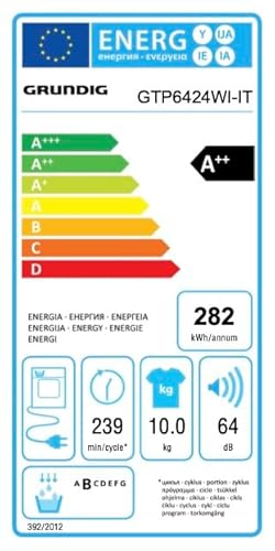 Grundig GTP6424WI a une moins bonne classe d'efficacité énergétique que le sèche-linge moyen (A++ contre A+++ ). Le sèche-linge moyen a une classe d'efficacité énergétique de A+++ .